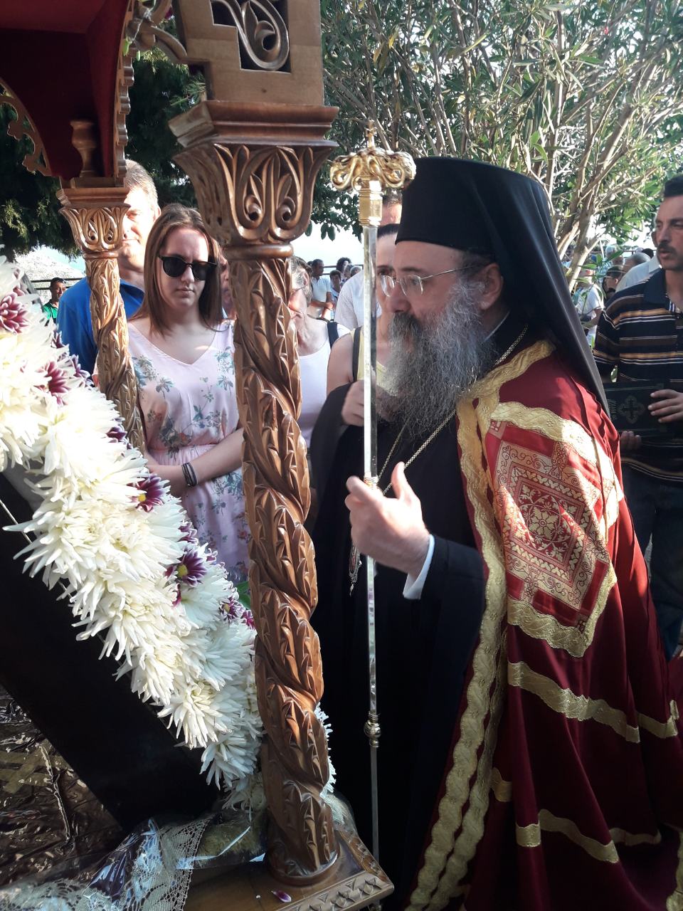 Ο Σεβασμιώτατος στο κήρυγμά του ανεφέρθη στο πρόσωπο της Υπεραγίας Θεοτόκου, η οποία δέχεται τον ύμνο, την ευχαριστία καί την ευγνωμοσύνη από όλους καί ιδιαιτέρως τους Έλληνες καί δίδει την χάρη καί την ευλογία, την χαρά και την εκπλήρωση των ιερών μας πόθων, δια πρεσβειών Της πρός τον Κύριο.