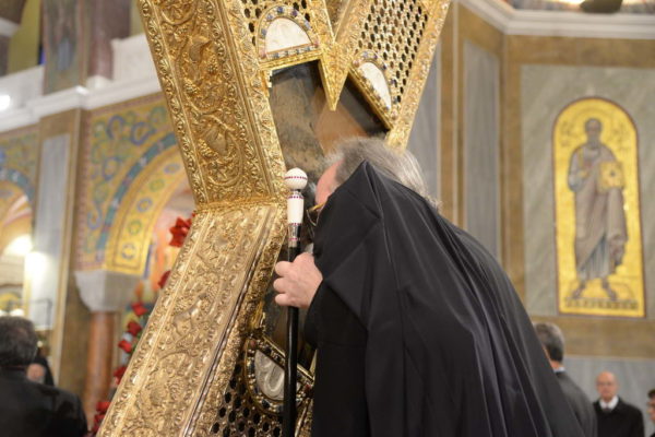 Κατέληξε ότι αυτό το μυστήριο του Σταυρού και της Αναστάσεως του Χριστού, το οποίο βίωσαν όλοι οι άγιοι και ο άγιος Ανδρέας να εμπνέη όλους, τους σταυρωμένους και σταυρωτές, για την ειρήνη του κόσμου και των καρδιών μας».
