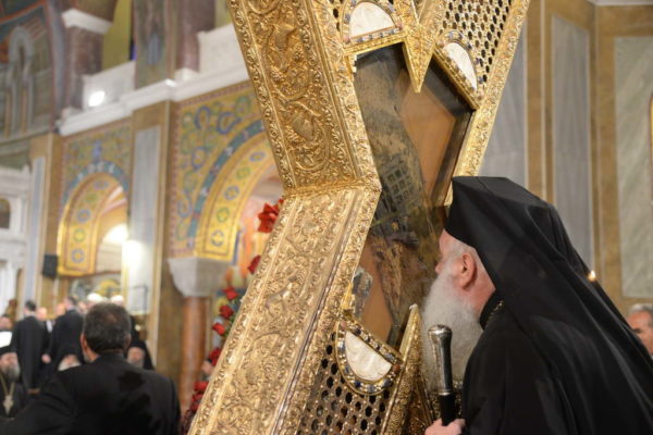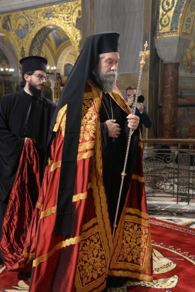 Εὐγνωμόνως, ἐν τῷ προσώπῳ Σας ἃγιε Ναυπάκτου εὐχαριστοῦμε τόν Μακαριώτατον Ἀρχιεπίσκοπον Ἀθηνῶν καί πάσης Ἑλλάδος κ.κ. Ἱερώνυμον καί Ὑμᾶς προσωπικῶς, διότι προεξήρχατε τῆς Θείας Λειτουργίας καί ἐκηρύξατε ἐμπνευσμένα, ὃπως πάντοτε, θεολογικώτατα, ὡς βαθυνούστατος καί δεινός θεολόγος πηγαῖα καί θαυμάσια τόν θεῖον λόγον, μεταφέροντες καί τό μήνυμα τῆς ἀγάπης τοῦ Μακαριωτάτου καί τῆς Ἱερᾶς Συνόδου.