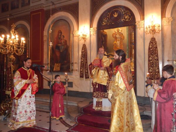 Στόν Ἱερό Ναό τοῦ Ἁγίου Ἀποστόλου Ἀνδρέου ἐτελέσθη α) Ἱερά Ἀγρυπνία (στόν Νέο Ναό) β) ἡ πρωϊνή Θεία Λειτουργία (στόν παλαιό Ναό) καί γ) ἡ Ἀρχιερατική Θεία Λειτουργία (στόν Νέο Ναό). Σέ ὃλες τίς ἱερές Ἀκολουθίες πλῆθος πιστῶν προσῆλθε γιά νά συμμετάσχῃ λειτουργικά στόν λαμπρό ἑορτασμό καί νά κοινωνήσῃ τοῦ Σώματος καί τοῦ Αἳματος τοῦ Χριστοῦ.