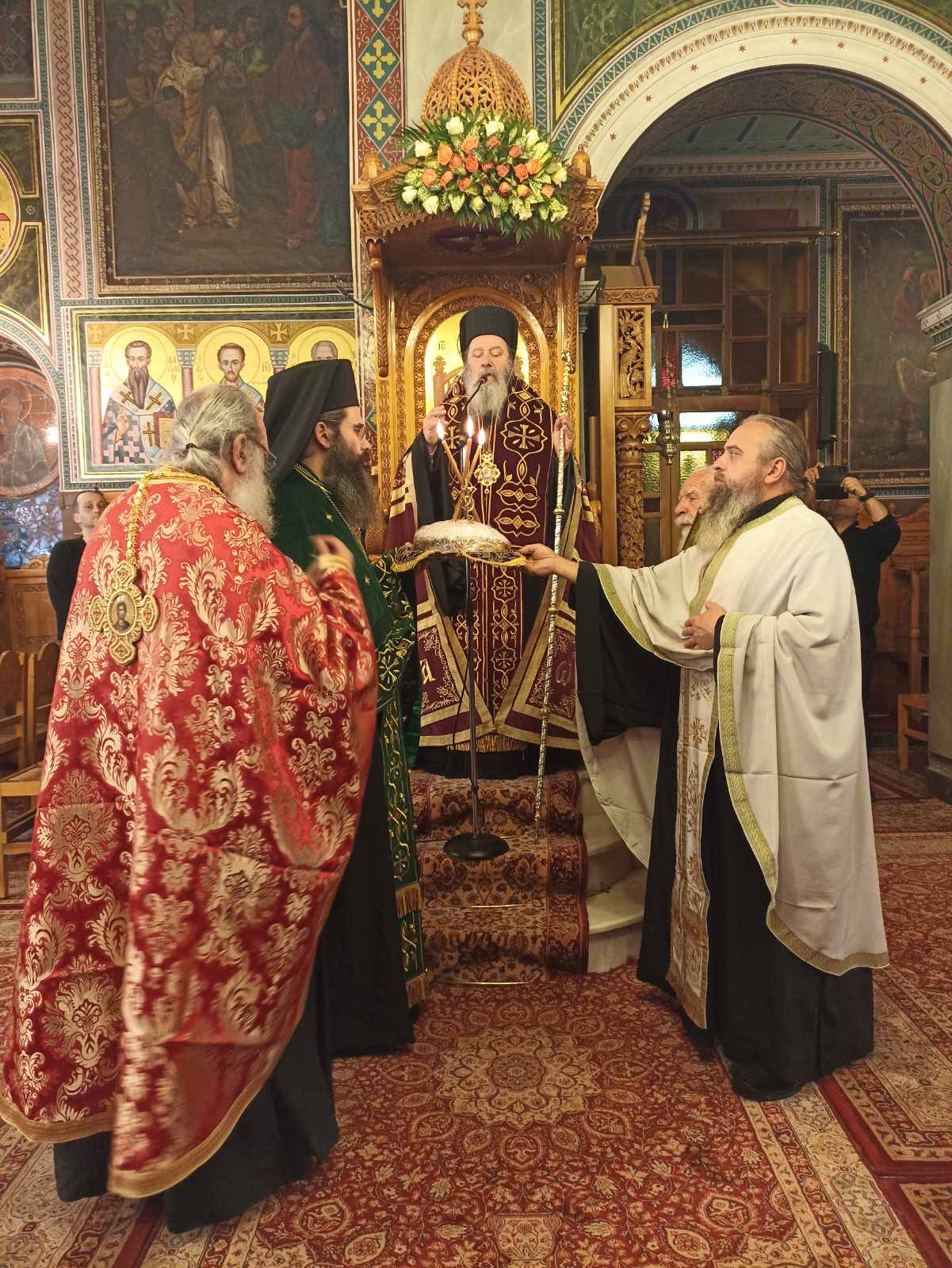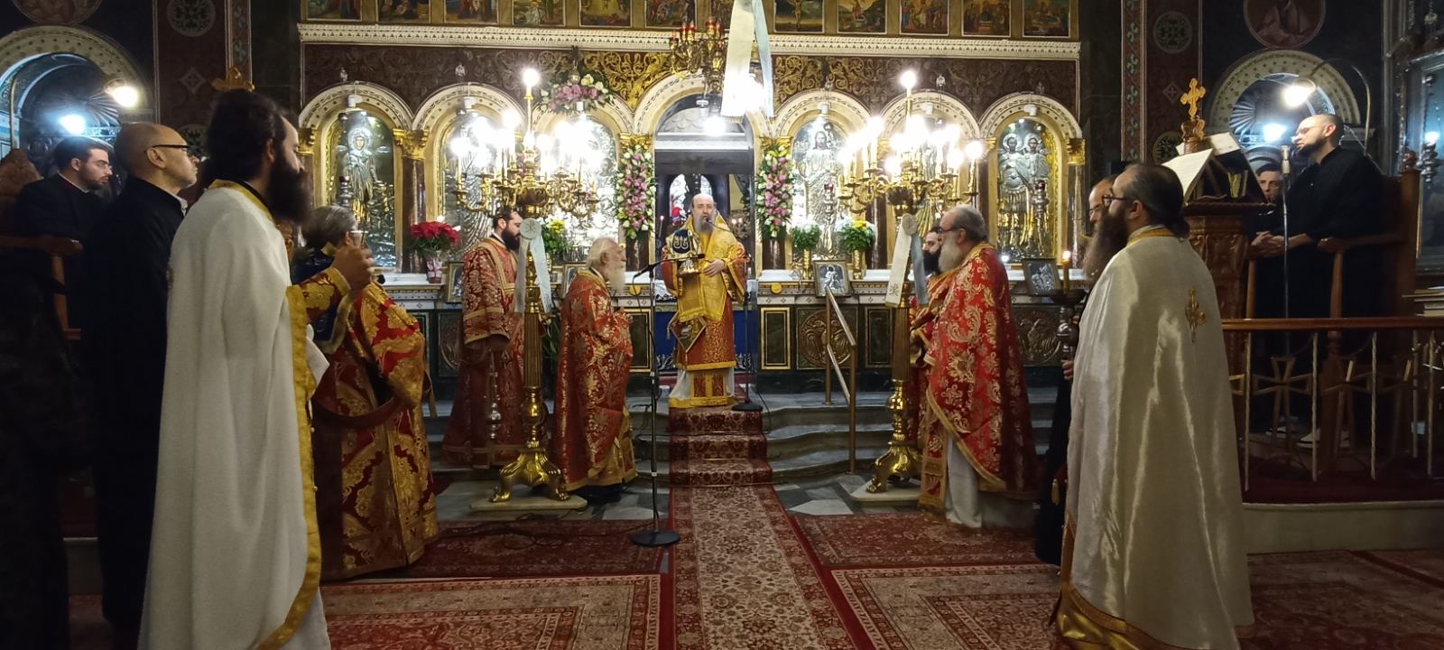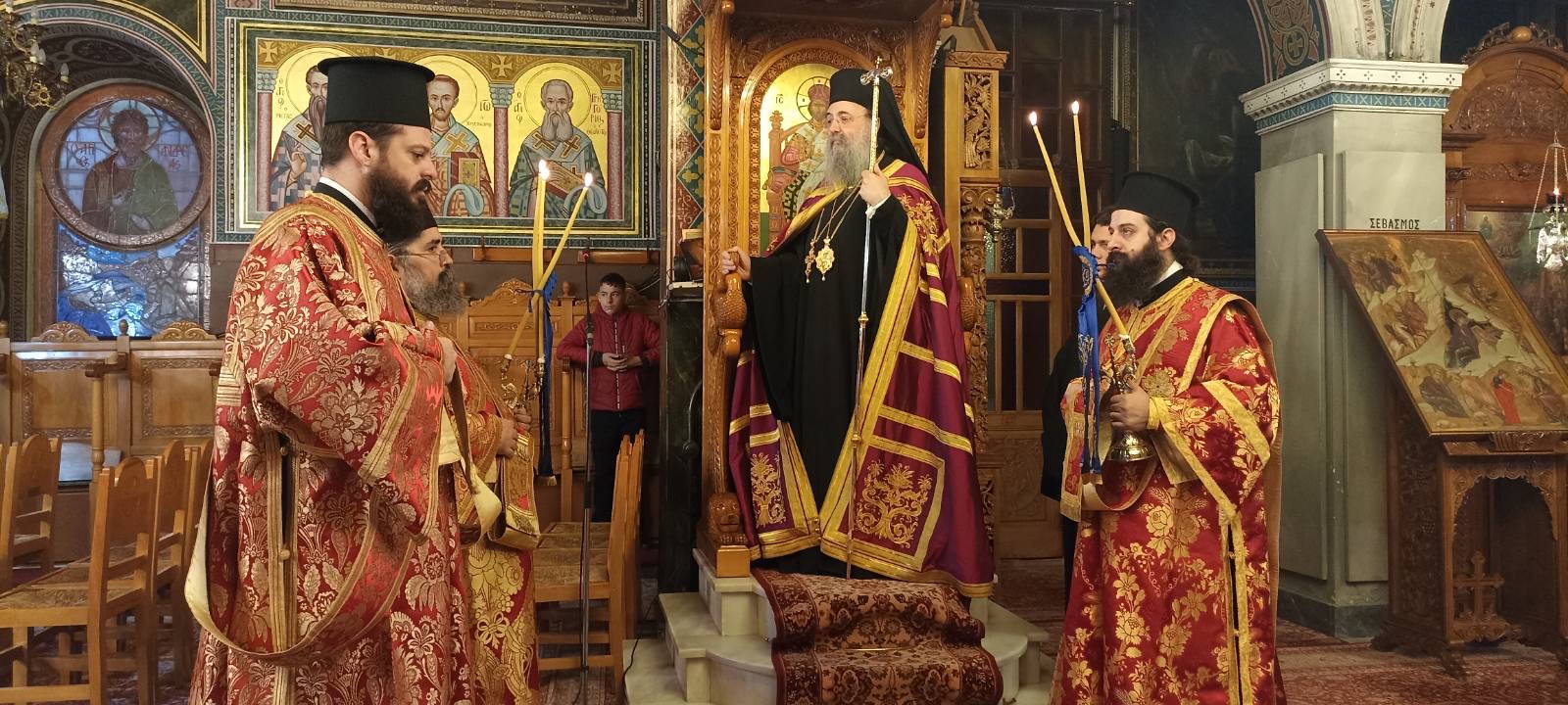 Ανήμερα χοροστάτησε στον Όρθρο και τέλεσε την Θεία Λειτουργία, ο Σεβασμιώτατος Μητροπολίτης Πατρών κ. Χρυσόστομος. Ο Σεβασμιώτατος στο κήρυγμά του ανέλυσε τον ύμνο: «τι σοι προσενέγγομεν Χριστέ…».