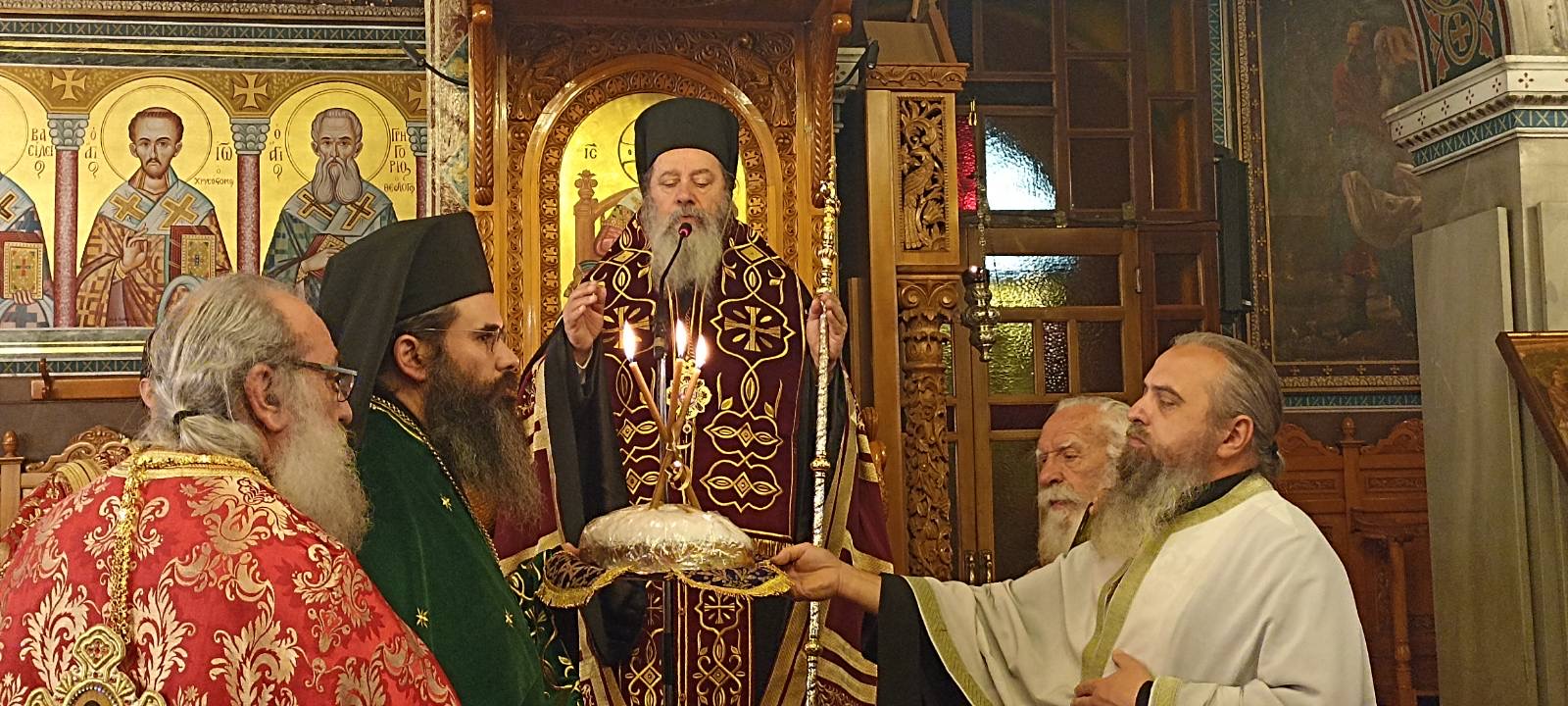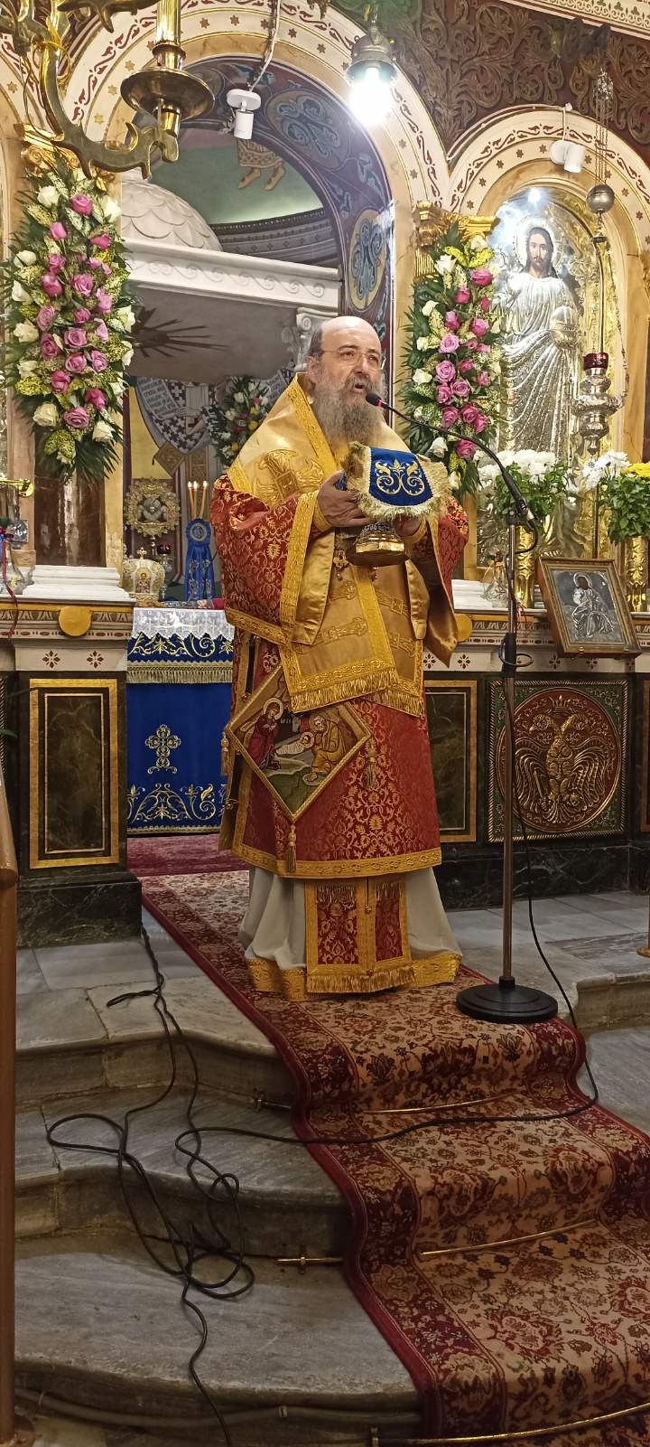 Την παραμονή στον μεγάλο Εσπερινό χοροστάτησε και μίλησε ο Θεοφιλέστατος Επίσκοπος Κερνίτσης κ. Χρύσανθος.