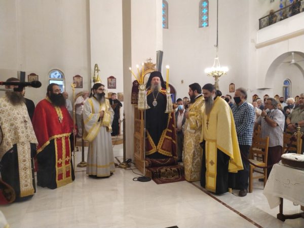 Τέλος, επαίνεσε τον Πανοσιολογιώτατο Προϊστάμενο του Ιερού Ναού, π. Ιωακείμ Σταματόπουλο και τον συνεφημέριό του π. Δημήτριο, τους Επιτρόπους, Ιεροψάλτας, Νεωκόρους και όλους τους Ενορίτες για την αγάπη τους και την αφοσίωσή τους στην Εκκλησία και τους κόπους και τον αγώνα τους για την ανέγερση του Ιερού Ναού.