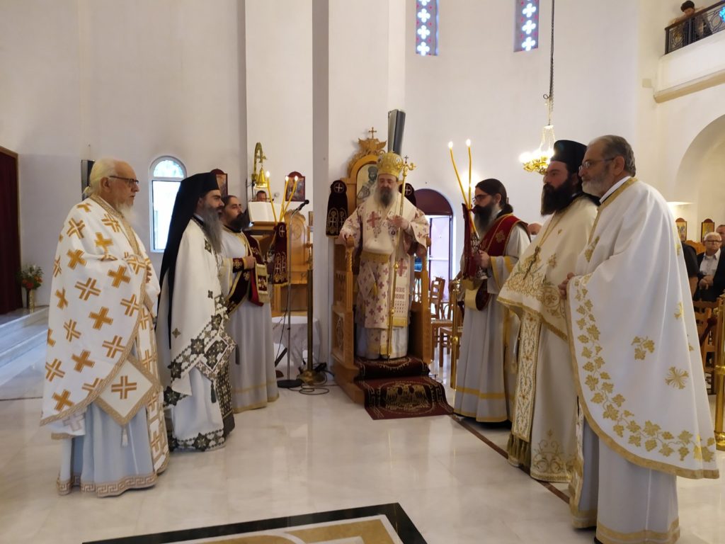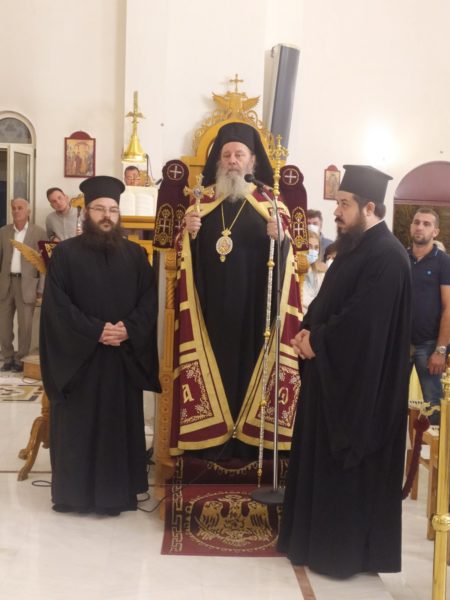 Τέλος, επαίνεσε τον Πανοσιολογιώτατο Προϊστάμενο του Ιερού Ναού, π. Ιωακείμ Σταματόπουλο και τον συνεφημέριό του π. Δημήτριο, τους Επιτρόπους, Ιεροψάλτας, Νεωκόρους και όλους τους Ενορίτες για την αγάπη τους και την αφοσίωσή τους στην Εκκλησία και τους κόπους και τον αγώνα τους για την ανέγερση του Ιερού Ναού.