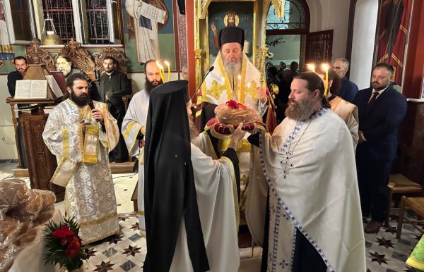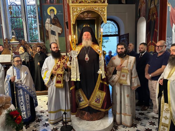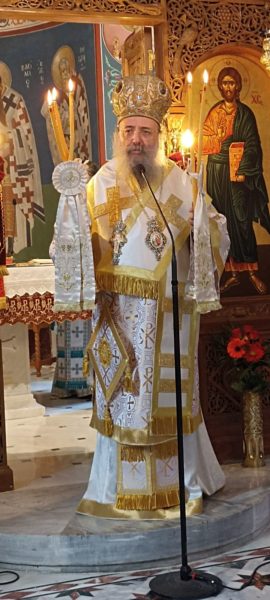 Ανήμερα, τέλεσε την Θεία Λειτουργία εν πληθούση Εκκλησία και κήρυξε τον θείο λόγο ο Σεβασμιώτατος Μητροπολίτης Πατρών κ. Χρυσόστομος, ο οποίος ανεφέρθηκε και στο ιστορικό του Ιερού Ναού, τον οποίον ανήγειρε ο κλεινός Ιεράρχης των Πατρών, Ιερόθεος ο Μητρόπουλος όπως και το Επισκοπείο, εντός ενός έτους (1898-1899), ως ο ίδιος ο αοίδιμος Αρχιερεύς σημειώνει σε χειρόγραφο τετράδιο και ως αναγράφεται στην κτητορική επιγραφή.