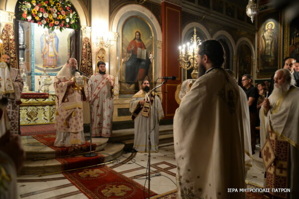 Ὁ Σεβασμιώτατος Μητροπολίτης Πατρῶν κ.κ. Χρυσόστομος, ἐχοροστάτησε καί ἐλειτούργησε στήν Ἱερά Ἀγρυπνία τήν Δευτέρα 10.6.2019, ἡ ὁποία ἐτελέσθη στόν Ἱερό Μητροπολιτικό Ναό ΕὐαγγελιστρίαςΠατρῶν, μέ τήν συμμετοχή πλήθους Λαοῦ.
