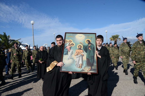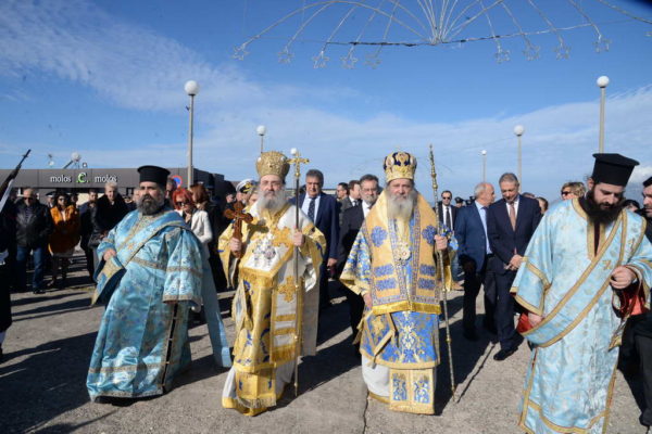 Εν συνεχεία σχηματίστηκε λιτανευτική πομπή με την εικόνα της Βαπτίσεως του Κυρίου και τον Τίμιο Σταυρό, με κατεύθυνση προς τον Λιμένα των Πατρών, όπου ο Σεβασμιώτατος, συμπαραστατούμενος από τον Θεοφιλέστατο Επίσκοπο Κερνίτσης κ. Χρύσανθο και άλλους Κληρικούς, έκανε την κατάδυση του Τιμίου Σταυρού, ενώ στην τελετή συμμετείχαν χιλιάδες ευσεβών Χριστιανών.