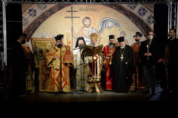 Το πλήθος έψαλε το «Χριστός Ανέστη» με μεγάλο ενθουσιασμό και με βαθειά συγκίνηση αφού εβίωσε το μέγα αυτό γεγονός και πάλι πανηγυρικά μετά από τις δυσκολίες των δύο τελευταίων ετών, ένεκα της πανδημίας.