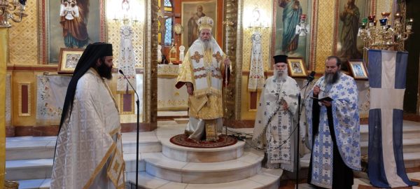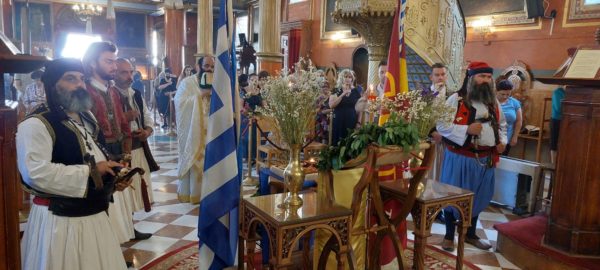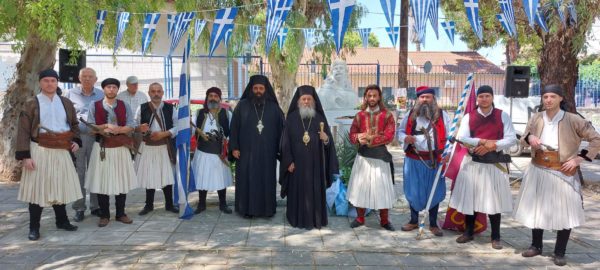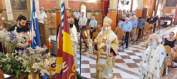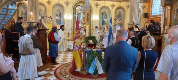 Της Θείας Λειτουργίας και του Ιερού Μνημοσύνου προέστη, σεπτή εντολή του Σεβασμιωτάτου Μητροπολίτου Πατρών κ.κ. Χρυσοστόμου, ο Θεοφιλέστατος Επίσκοπος Κερνίτσης κ. Χρύσανθος, ο οποίος ωμίλησε επικαίρως, αναφερθείς στην ηρωική προσωπικότητα του μεγάλου Οπλαργηχού Οδυσσέως Ανδρούτσου και στους αγώνες του για την ελευθερία του Γένους.