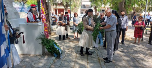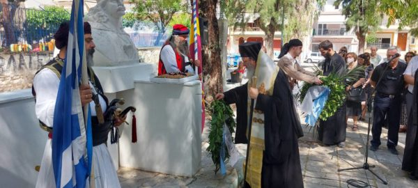 Μετά την Θεία Λειτουργία, μετέβησαν, εν πομπή συνοδεία της Φιλαρμονικής του Δήμου Πατρέων, στην Πλατεία Ανδρούτσου (Βλατερό) όπου ετελέσθη επιμνημόσυνη δέηση προ της προτομής του Οδυσσέα Ανδρούτσου, κατετέθησαν στέφανοι, παρουσιάσθησαν εθνικοί και παραδοσιακοί χοροί και εψάλη ο Εθνικός Ύμνος.