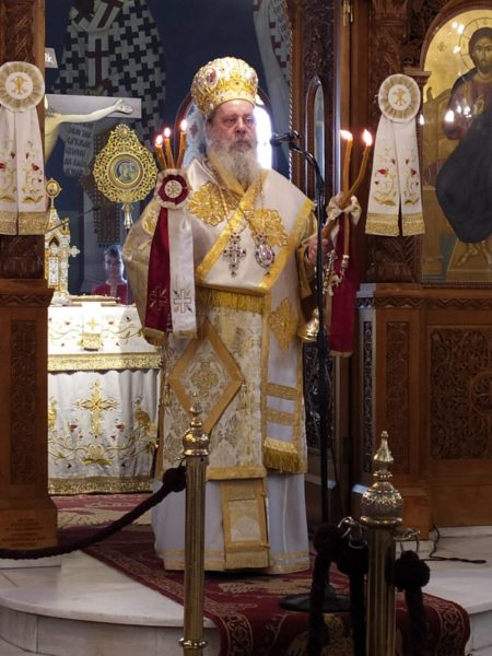 Ο Σεβασμιώτατος επαίνεσε τους κατοίκους του χωριού για την ευσέβειά τους και γιατί κατοικούν στον τόπο τους, καλλιεργώντας τη γη των πατέρων τους και φυλάσσοντας τα ιερά και τα όσια του γένους μας, την πίστη στο Θεό, την αγάπη προς την πατρίδα μας και διατηρούν την ωραία παράδοση του Έθνους μας.