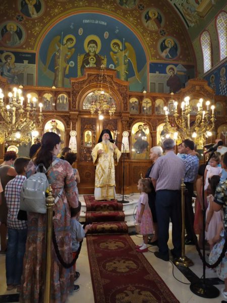 Στον πανηγυρίσαντα μεγαλοπρεπή Ιερό Ναό της Αγίας Οσιοπαρθενομάρτυρος Παρασκευής Πατρών, τόσο στον Εσπερινό, όσο και στη Θεία Λειτουργία, προέστη και μίλησε ο Θεοφιλέστατος Επίσκοπος Κερνίτσης κ. Χρύσανθος, ο οποίος αναφέρθηκε στην θαυμαστή βιωτή και πολιτεία της μεγάλης και λαοφιλούς Αγίας, στην τιμή της από τον Λαό του Θεού και στην σύγχρονη πραγματικότητα την οποία βιώνομε ως κοινωνία, ζώντες μακράν του Θεού. Μίλησε επίσης για την ανάγκη μετανοίας και μετέφερε τις ευχές του Σεβασμιωτάτου Μητροπολίτου Πατρών κ.κ. Χρυσοστόμου.
