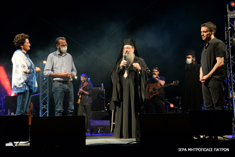 Επίσης ευχαρίστησε από καρδίας τους δύο καλλιτέχνες Άλκιστι Πρωτοψάλτη και Μιχάλη Χατζηγιάννη, οι οποίοι εδέχθησαν να έλθουν στην Πάτρα και με τον δικό τους τρόπο να βοηθήσουν το έργο της Εκκλησίας και τους προσέφερε ως ευλογία από μια εικόνα του Αγίου Αποστόλου Ανδρέου.