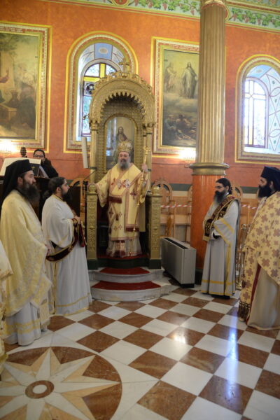 Ανήμερα, τελέστηκε η Θεία Λειτουργία υπό του Σεβασμιωτάτου Μητροπολίτου Πατρών κ.κ. Χρυσοστόμου.