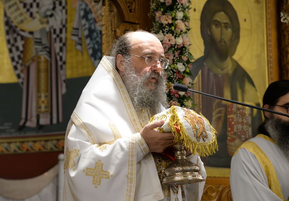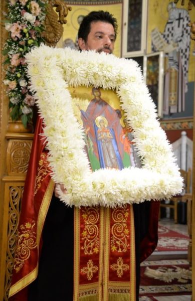 Ανήμερα της εορτής, ο Σεβασμιώτατος τέλεσε την Θεία Λειτουργία στον Ιερό Ναό της Αγίας Σοφίας και των τριών θυγατέρων της και ανεφέρθη στη σοφία της Αγίας γενικώς, η οποία όχι μόνο για τον εαυτό της, αλλά κυρίως για τα τέκνα της, εφρόντισε να έχουν σταθερό, αγωνιστικό, φρόνημο και αδαμάντινο ήθος. Έδωσε στα παιδιά της, εκτός από την κατά κόσμον σοφίαν, την ουράνια γνώση και είλκυσε την χάρη του Θεού, αφού οι θυγατέρες ης δεν επαιδώθησαν με φρόνημα φιλόυλον, φιλήδονον και φιλόδοξον, αλλά με την κατά Θεόν παιδείαν.