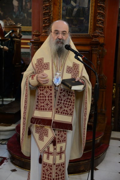 Στο κήρυγμά του ο Σεβασμιώτατος αναφέρθηκε στον τιμώμενο Άγιο Ιάκωβο τον Αδελφόθεο, στην αγία ζωή και διδασκαλία του και στην μαρτυρική τελευτή του. Επίσης ανέγνωσε τμήμα από την Καθολική Επιστολή του Αγίου Ιακώβου και ερμήνευσε τα χωρία που αναφέρονται στην πρακτική ζωή των πιστών και στην εφαρμογή των λόγων του Κυρίου σε έργα, ώστε να μη μένει κανείς μόνο ακροατής των λόγων του Κυρίου, αλλά να γίνεται και ποιητής. Επίσης ερμήνευσε το χωρίο που αναφέρεται στην γλώσσα η οποία πολλάκις, μετατρέπεται εις πυρ και «φονικόν» όργανο για τους συνανθρώπους μας, ενώ είναι προορισμένη να υμνεί και να ευλογεί τον Θεό και να αναπαύει τους ανθρώπους.