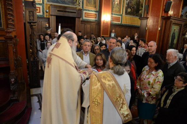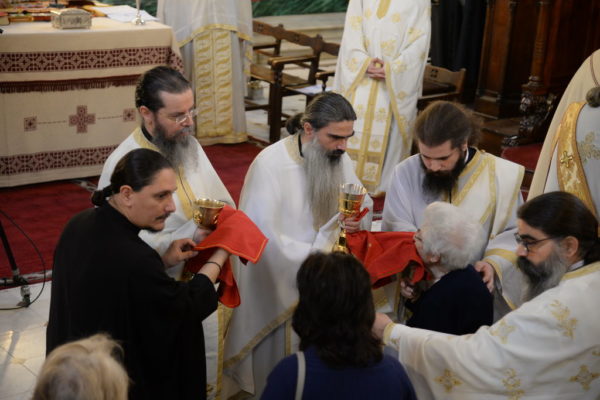 Η Θεία Κοινωνία έγινε κατά τον αρχαίον πρωτοχριστιανικό τρόπο, χωριστά δηλαδή μετεδόθη το Άγιον Σώμα του Κυρίου και χωριστά το Τίμιο Αίμα, ως κοινωνούν και οι Ιερείς στο Άγιο Βήμα.