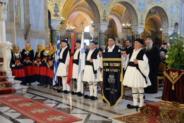 Με τον Μητροπολίτη Πατρών συλλειτούργησε ο Θεοφιλέστατος Επίσκοπος Κερνίτσης κ. Χρύσανθος ενώ, στην Θεία Λειτουργία προσήλθαν και εκκλησιάστηκαν όλοι οι Κληρικοί της Ιεράς Μητροπόλεως Πατρών και πλήθος κόσμου, ως και Αντιπροσωπείες τοπικών Πατριωτικών Συλλόγων με τις εθνικές ενδυμασίες και τα λάβαρα των Συλλόγων.