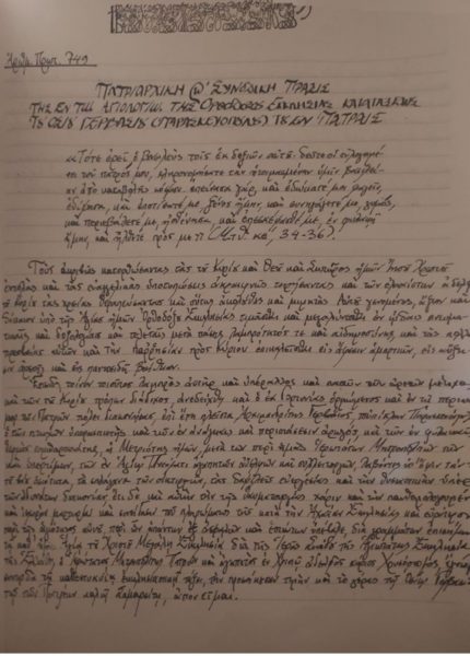 Τον Σεβασμιώτατον και τους εκ Πατρών Κληρικούς και Λαίκούς, καλωσόρισεν ο ευγενής Ιεράρχης του Οικουμενικού Θρόνου και εν Πάτραις ανδρωθείς, Μητροπολίτης Σαράντα Εκκλησιών κ. Ανδρέας.