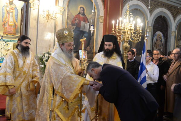 Ο Σεβασμιώτατος στο κήρυγμά του ανεφέρθη στην διαχρονικότητα της διδασκαλίας των Τριών Ιεραρχών, τους οποίους εχαρακτήρισε, προοδευτικούς, διορατικούς, μεγίστους θεολόγους, οι οποίοι μετέδωσαν εμπειρικά πλέον τα βιώματα τα δικά τους, ως προς την σχέση τους με τον Θεό, με τον άνθρωπο και τον κόσμο, αλλά και επαναστατικούς, αφού ξεπέρασαν τα όρια τα γνωστά του τότε κόσμου και ένωσαν τους δύο κόσμους, τον Ελληνικό και τον Χριστιανικό, εκχριστιανίζοντας τον Ελληνισμό καί εξελληνίζοντας τον Χριστιανισμό. Μέσα από αυτό το πνεύμα και η αποκεκαλυμμένη από τον Θεό αλήθεια, έγινε γνωστή στόν τότε κόσμο, αλλά και ο Ελληνισμός που έπνεε τα λοίσθια διεσώθη.