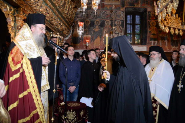 Στον νέο Μοναχό, ο Σεβασμιώτατος μίλησε με πολλή πατρική αγάπη και μέσα από τα λόγια του Αγίου Ευσταθίου Θεσσαλονίκης παρουσίασε το έργο και την αξία του μοναχού.