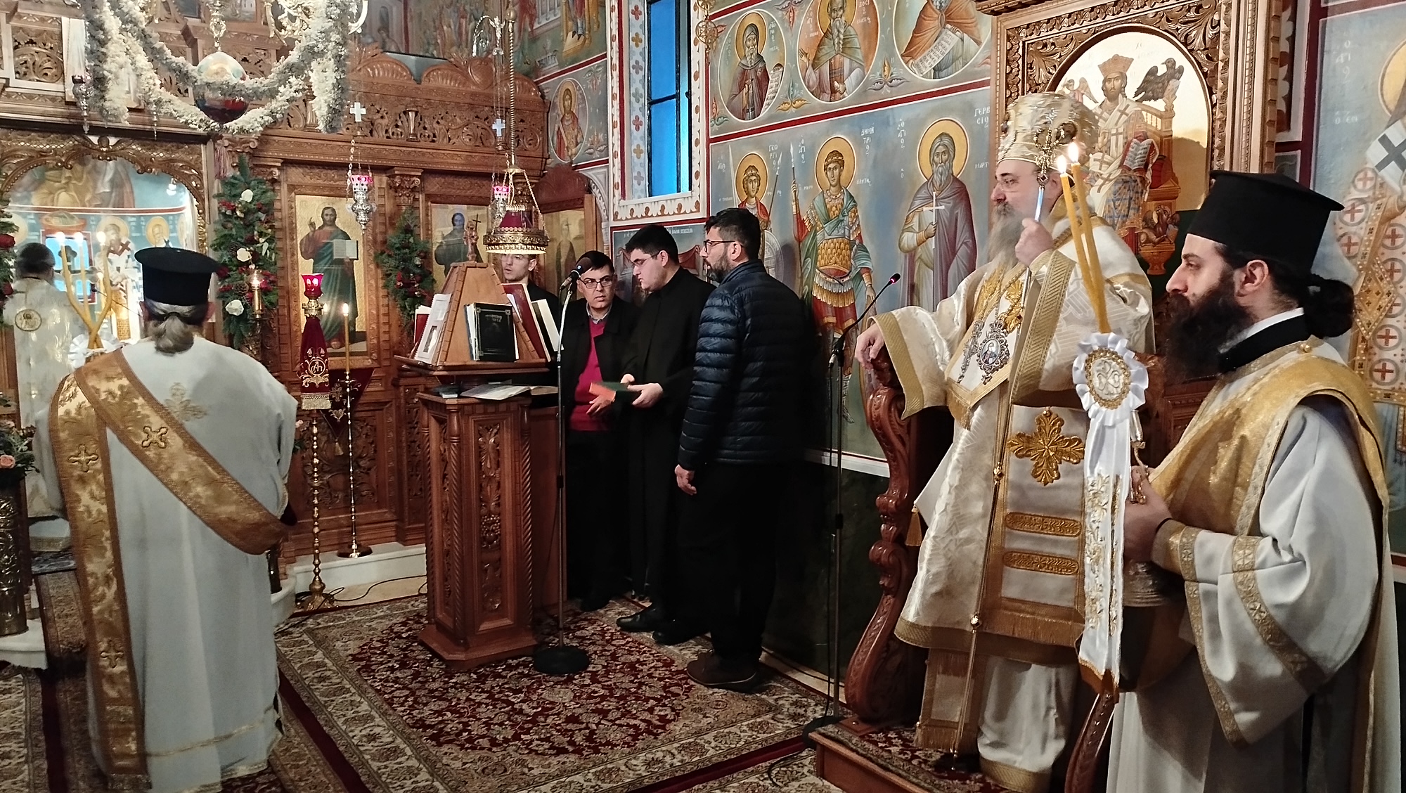 Οι νέοι έψαλαν κατά την Θεία Λειτουργία και στο αρχονταρίκι έψαλαν ύμνους και παραδοσιακά κάλαντα.