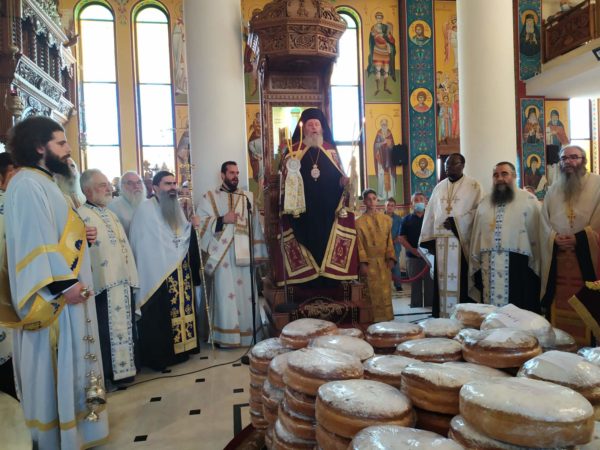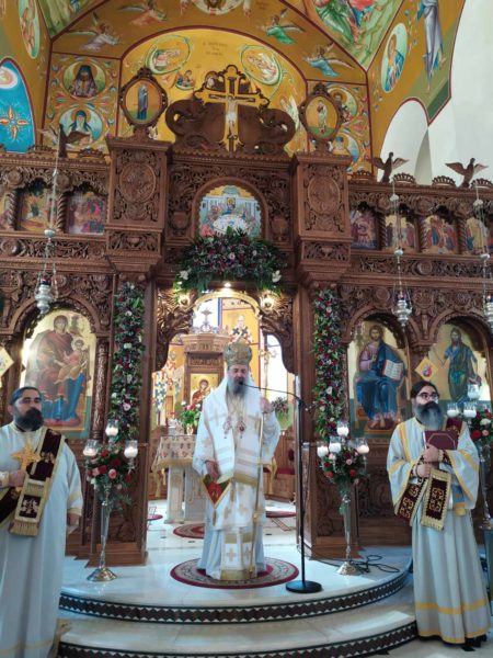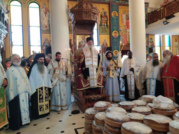 Επίσης, έκανε αναφορά στους Πατέρας της Δ΄ Οικουμενικής Συνόδου, οι οποίοι στην Χαλκηδόνα το 451μ. Χ. αγωνίστηκαν εναντίον του Ευτυχούς και του Διοσκόρου, εναντίον των αιρετικών Μονοφυσιτών, υπερασπιζόμενοι τας δύο φύσεις του Κυρίου μας και θαυματουργικώς εκυρώθη ο Τόμος των Ορθοδόξων υπό της Αγίας Μεγαλομάρτυρος Ευφημίας και κατέληξε: “Ας κρατήσωμε ως κόρην οφθαλμού τις αποκεκαλυμμένες από τον Θεό αλήθειες, την Ορθόδοξη και Άγία πίστη μας, όπως μας την παρέδωσαν οι Άγιοι Απόστολοι, οι Άγιοι Ιεράρχαι και οι Άγιοι Μάρτυρες της Εκκλησίας μας“. Ο Σεβασμιώτατος, ολοκληρώνοντας, επήνεσε τον Προϊστάμενο του Ιερού Ναού, Αιδεσιμολογιώτατο Πρωτοπρεσβύτερο π. Παναγιώτη Θωμά, για το έργο το οποίο επιτελεί στην Ενορία και κυρίως στον τομέα της Νεότητος, μαζί με τον συνέφημέριό του και τους συνεργάτες του.