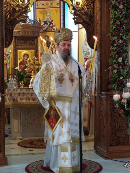 Στο κήρυγμα του ο Σεβασμιώτατος μίλησε για τις αρετές και το θάρρος, την υπομονή και την γενναιότητα της Αγίας, η οποία ομολόγησε τον Ιησού Χριστό «τέλειον Θεόν και τέλειον άνθρωπον» και επικύρωσε με το αίμα της αυτή την ομολογία.