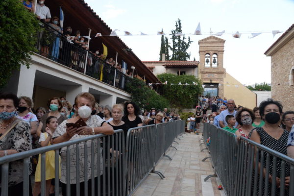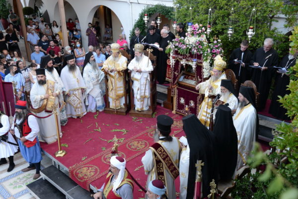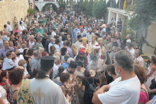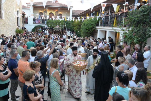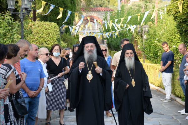 Της Ιεράς Ακολουθίας προέστη ο Σεβασμιώτατος Μητροπολίτης Πατρών κ. Χρυσόστομος, συμπαραστατούμενος υπό των Θεοφιλεστάτων Επισκόπων Ευκαρπίας κ. Ιεροθέου και Κερνίτσης κ. Χρυσάνθου, του Ηγουμένου της Ιεράς Μονής π. Συμεών και των Πατέρων της Μονής και άλλων Κληρικών.