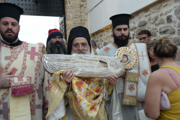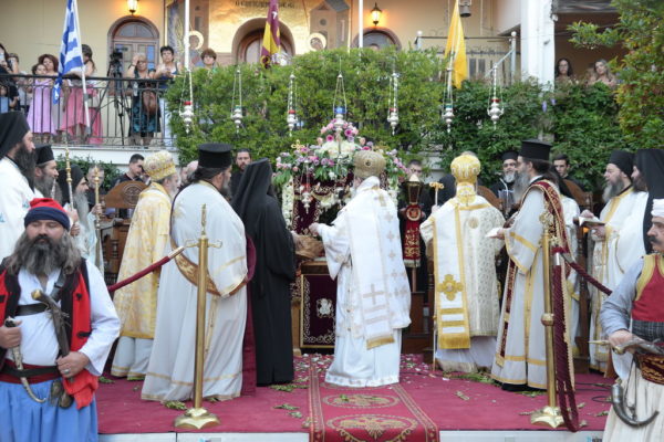 Ακόμη συμμετείχε και συνόδευσε την Λιτανεία της Ιεράς Εικόνος της Παναγίας, το Άγημα ιστορικής αναβιώσεως των Πατρών «Παναγιώτης Καρατζάς». Άπαντας τους ευχαρίστησε και τους ευλόγησε ο Σεβασμιώτατος, ευχηθείς τα δέοντα.