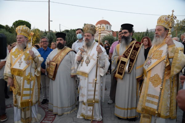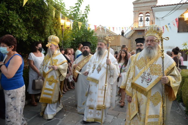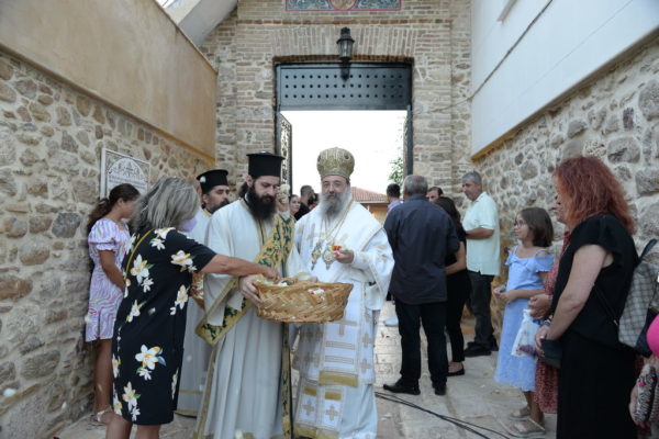 Στο κήρυγμά του ο Σεβασμιώτατος, μίλησε για την τρισσήν συγγένεια των αγίων με την Υπεραγία Θεοτόκο, σύμφωνα με την διδασκαλία του Αγίου Συμεών του νέου Θεολόγου και εν συνεχεία αναφέρθηκε με βαθιά συγκίνηση στην Παναγία των προσφύγων και κατατρεγμένων της Μικράς Ασίας και του Πόντου, με την ευκαιρία της συμπληρώσεως 100 ετών από την Μικρασιατική καταστροφή.