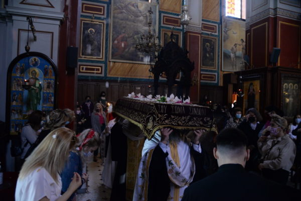 Κατά την Ακολουθία της Αποκαθηλώσεως στον Ιερό Ναό της Ευαγγελιστρίας Πατρών, ο Σεβασμιώτατος Μητροπολίτης Πατρών κ. Χρυσόστομος, μέσα από μια αναφορά στο Πάθος του Κυρίου, ευχαρίστησε τον Θεό λέγοντας « Δόξα σοι Κύριε δόξα σοι, που μας αξίωσες να προσκυνήσουμε και φέτος τα Άχραντα Πάθη Σου. Αξίωσέ μας να Σε δοξολογήσωμε και Αναστάντα εκ νεκρών».