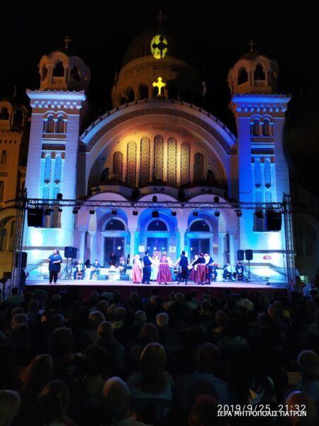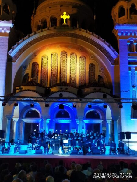 Μεγαλειώδης ἐκδήλωση πραγματοποιήθηκε τὴν Τετάρτη 25.9.2019 τό βράδυ, στὸν προαύλιο χῶρο τοῦ Ἱεροῦ Ναοῦ τοῦ Ἁγίου Ἀποστόλου Ἀνδρέου Πατρῶν μὲ τὴν εὐκαιρία τῆς 55ης ἐπετείου τῆς Ἐπανακομιδῆς τῆς Τιμίας Κάρας τοῦ Ἁγίου Ἀνδρέου στὴν Πάτρα.