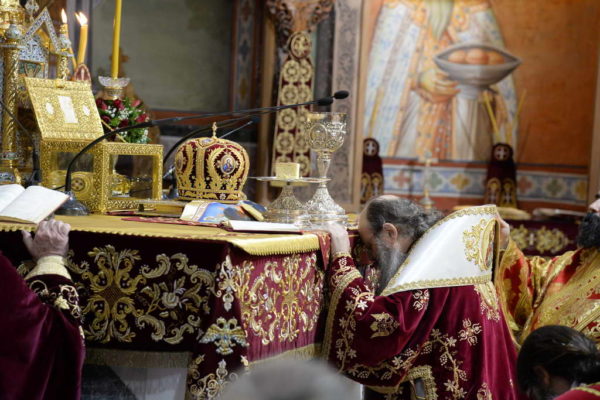 Στό τέλος τοῦ Ἑσπερινοῦ ὁ Σεβασμιώτατος γονυπετής μαζί μέ τούς Ἱερεῖς καί τούς Διακόνους, ἀνέπεμψε δέηση ὑπέρ ὑγιείας τῶν ἀσθενούντων ἀδελφῶν μας καί ὑπέρ ἀναπαύσεως τῶν κοιμηθέντων, ἓνεκα τοῦ κορωνοϊοῦ.