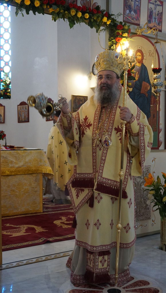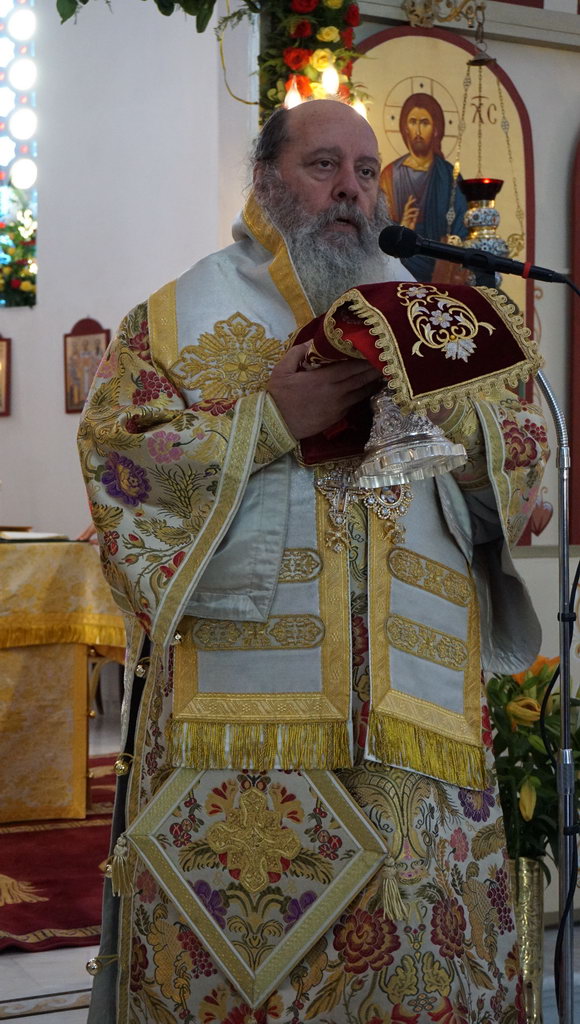 Πρό τῆς Ἀπολύσεως ὁ Σεβασμιώτατος ἐπήνεσε μέ θερμά λόγια τόσο τόν Προϊστάμενο τοῦ Ἱεροῦ Ναοῦ, πανοσιολογιώτατο Ἀρχιμ. π. Ἰωακείμ Σταματόπουλο καί τόν Συνεφημέριο του π. Δημήτριο Χαλκιόπουλο, τοῦς Ἐκκλησιαστικούς Ἐπιτρόπους, τούς ἐθελοντάς τῆς ἀγάπης, ὡς καί ὃλους τούς Ἐνορίτας, γιατί ἐργάζονται μέ ζῆλο καί αὐταπάρνηση γιά τήν ἀποπεράτωση τῶν ἐργασιῶν τοῦ Ἱεροῦ Ναοῦ.