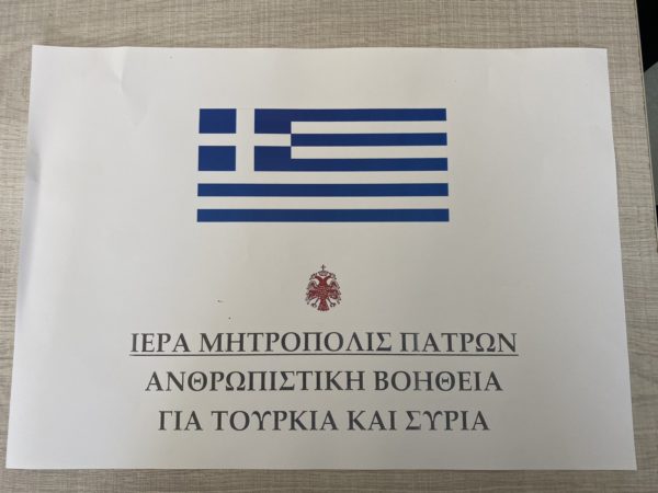 Μεγάλη και συγκινητική είναι η ανταπόκριση του Πατραϊκού Λαού στο κάλεσμα της Ιεράς Μητροπόλεως Πατρών για την συγκέντρωση ανθρωπιστικής βοηθείας, για τους πληγέντες από το φοβερό και καταστρεπτικό σεισμό συνανθρώπους μας, στην Τουρκία και Συρία.