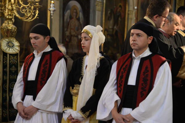 Κατά την ώρα της Θείας Λειτουργίας και του Μνημοσύνου τιμητικά παρίσταντο νέοι και νέες, ενδεδυμένοι με τις εθνικές ενδυμασίες, τους οποίους επήνεσε και ευχαρίστησε ο Σεβασμιώτατος.