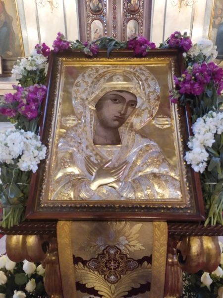 Τόνισε δε ότι δεν πρέπει να μείνουμε μόνο στη συγγένεια με την Θεοτόκο, ως εκ της δημιουργίας μας από τον Θεό με τον ίδιο τρόπο, γι’ αυτό μας ονομάζει ο Άγιος αδελφούς της Υπεραγίας Θεοτόκου, αλλά να επιτύχουμε και την άλλη συγγένεια, να γίνουμε αληθώς υιοί Της και ακόμη να φθάσουμε εις το σημείο, όπως οι θεούμενοι, να γεννάται δηλαδή και να παραμένει εντός ημών ο Κύριος.
