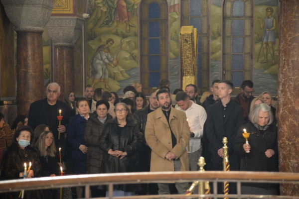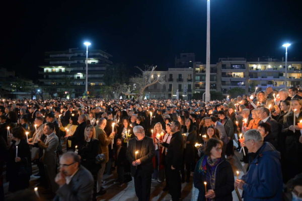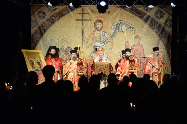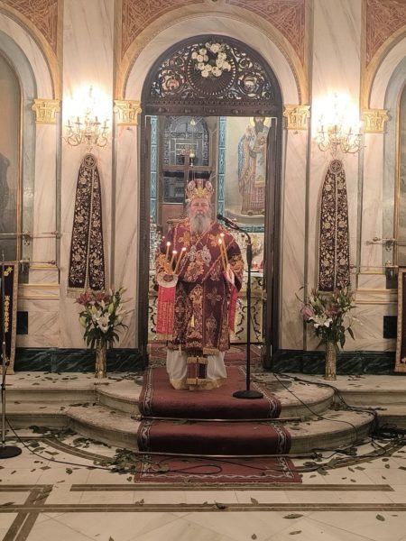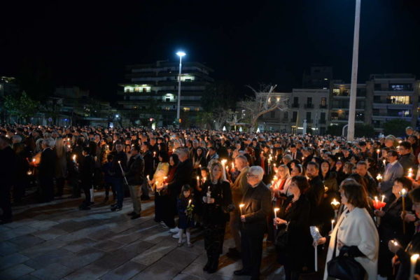 Στον εντυπωσιακό Ναό του Αποστόλου Ανδρέου προεξήρχε της τελετής της Ανάστασης, με τη συμμετοχή πλήθους κόσμου, ο Σεβασμιώτατος Μητροπολίτης Πατρών κ. Χρυσόστομος. Απεύθυνε θερμό χαιρετισμό και αναστάσιμο μήνυμα στους ευσεβείς χριστιανούς και κάλεσε όλους να προσευχηθούν για να σταματήσουν οι πόλεμοι στη Μέση Ανατολή και στον Βορρά, που άδικα αιματοκυλούν τη γη. Ευχήθηκε ειρήνη στις καρδιές, στις οικογένειες και σε όλο τον κόσμο.
