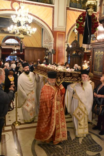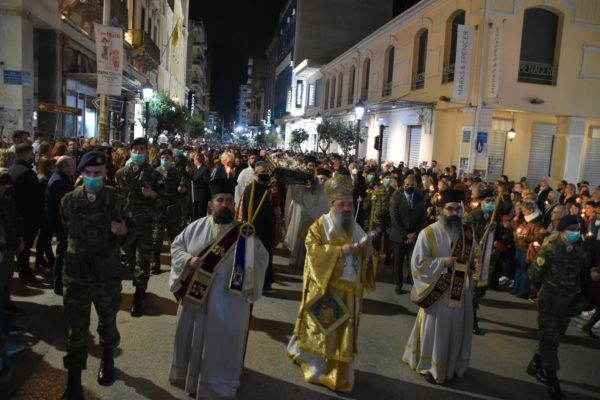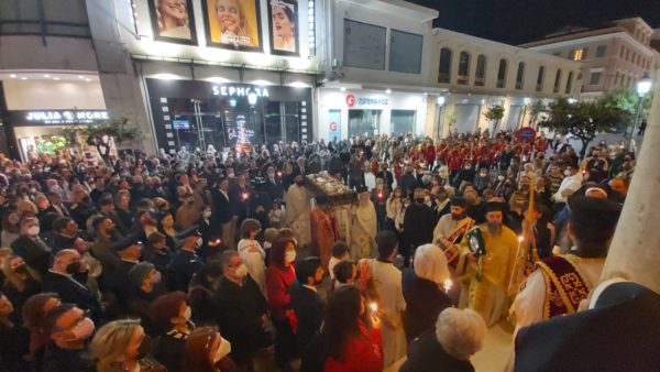 Με ιερά κατάνυξη τελέσθηκε στους Ιερούς Ναούς η Ακολουθία του Επιταφίου και εν συνεχεία η Ιερά Λιτάνευση στις οδούς της Αποστολικής πόλης των Πατρών, ενώ λαοθάλασσα κατέκλυσε τους Ναούς και τους δρόμους της πόλης απ’ όπου πέρασε ο Επιτάφιος.