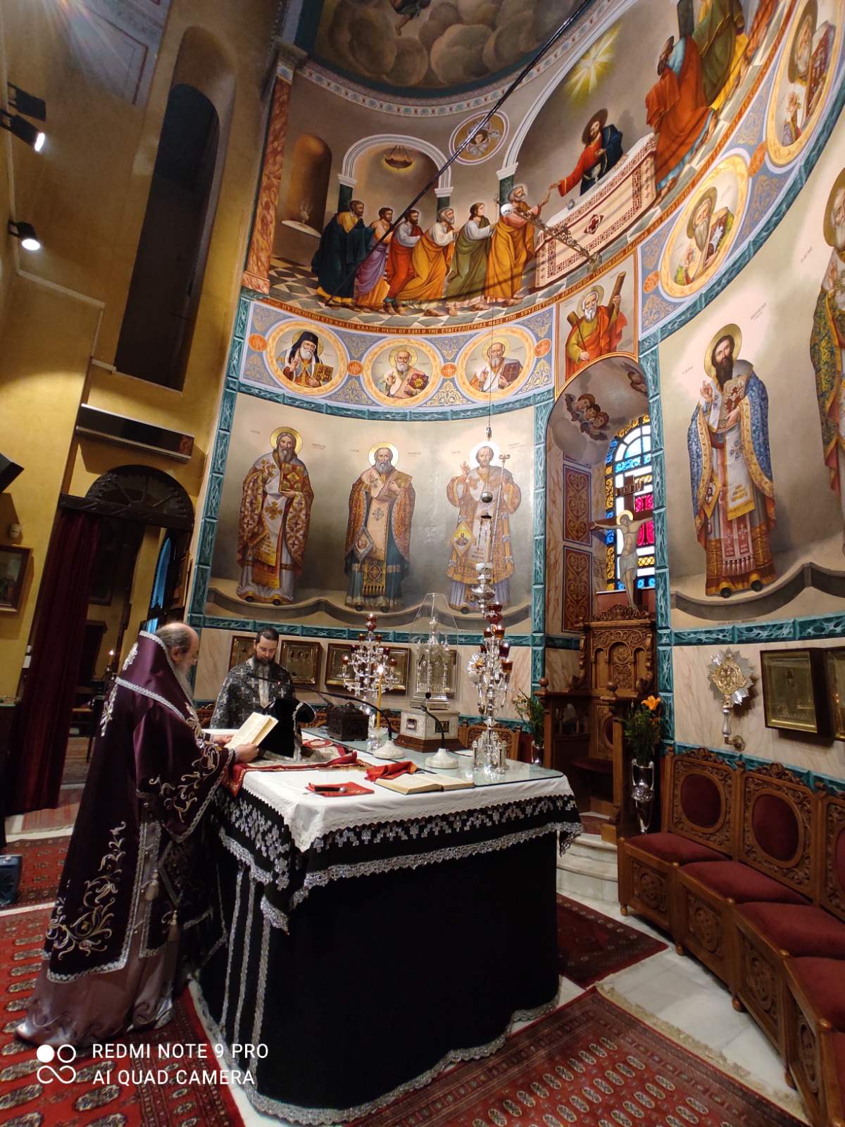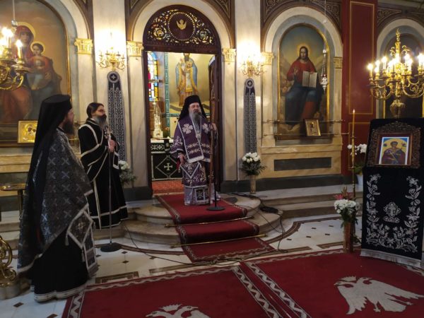 Προηγιασμένη Θεία Λειτουργία τελέσθηκε την Τετάρτη 14 Απριλίου 2021, υπό του Σεβασμιωτάτου Μητροπολίτου Πατρών κ.κ. Χρυσοστόμου, στον Ιερό Μητροπολιτικό Ναό Ευαγγελιστρίας Πατρών, επί τη ιερά μνήμη του Αγίου Ενδόξου Νεομάρτυρος Δημητρίου, του εν Τριπόλει μαρτυρήσαντος, (14 Απριλίου του 1803, Τρίτην, τότε της εβδομάδος του Θωμά).