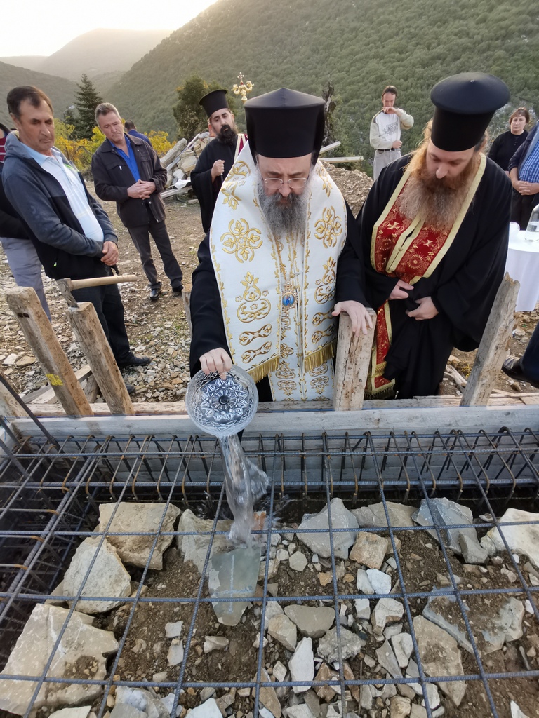 Ο Σεβασμιώτατος τέλεσε τον Αγιασμό, έθεσε τον θεμέλιο λίθο και μίλησε με θερμά λόγια στους παρισταμένους και συμμετέχοντας στην ιερά τελετή. Τους επήνεσε για την αφοσίωσή τους στη Αγία μας Εκκλησία, για την ενότητα και αγάπη μεταξύ τους και ευχήθηκε σύντομα να ανεγερθή ο Ναός και να τελεσθούν τα ιερά εγκαίνιά του.
