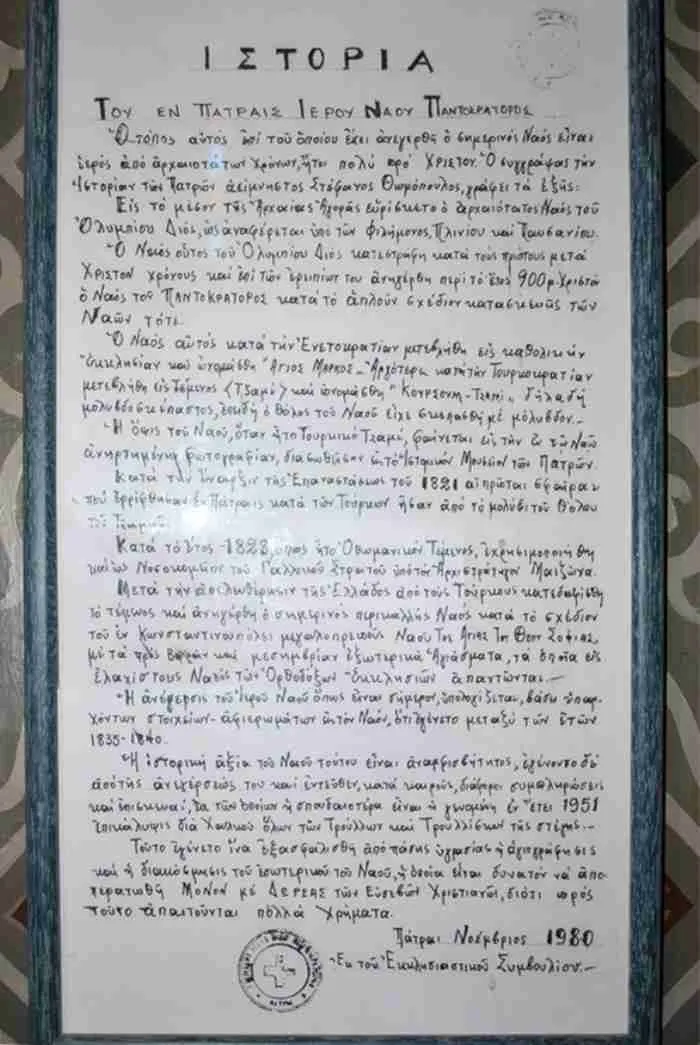 Ο ναός του Παντοκράτορα στην Πάτρα χτίστηκε περίπου το 900 μ.Χ. και αποτελεί σημείο αναφοράς για την πόλη.