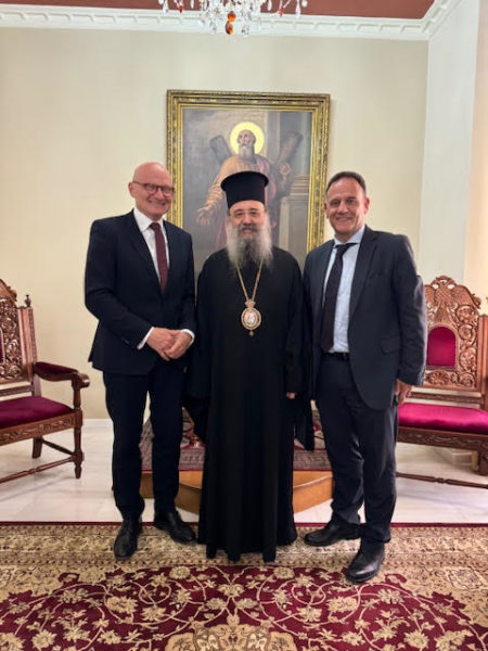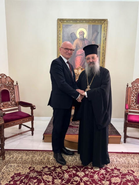 Τον Σεβασμιώτατο Μητροπολίτη Πατρών κ. Χρυσόστομο, επισκέφθηκε ευρισκόμενος στην Πάτρα, ο Πρέσβης της Γερμανίας στην Ελλάδα κ. Αντρέας Κίντλ, συνοδευόμενος από τον Πρόξενο της Γερμανίας στην Πάτρα, κ. Ανδρέα Παπαδόπουλο.