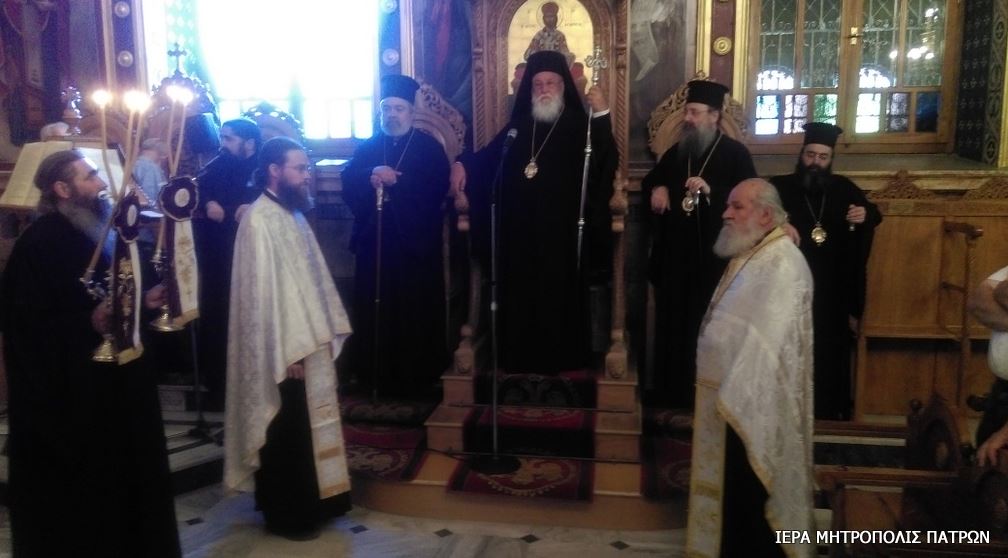 Τήν Κυριακή 21.7.2019, ὁ Σεβασμιώτατος Μητροπολίτης Πατρῶν κ.κ. Χρυσόστομος, ἐχοροστάτησε στόν Ὂρθρο καί προέστη τῆς Θείας Λειτουργίας, ἐκήρυξε τόν θεῖο λόγο καί ἐτέλεσε τά ἱερά μνημόσυνα τοῦ πατρός του, Εὐθυμίου Ἱερέως καί τῆς μητρός του, Κατίνας Πρεσβυτέρας καί τό ἐτήσιο μνημόσυνο τοῦ μακαριστοῦ Νικηφόρου Καγκελάρη.