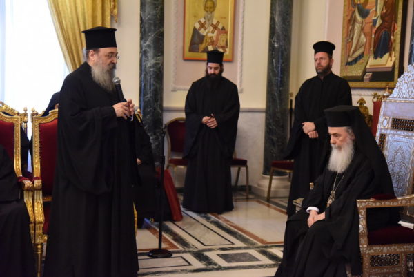 Τον Μακαριώτατο προσφώνησε ο Μητροπολίτης κ. Χρυσόστομος, ο οποίος εξέφρασε την ευλάβεια του ιδίου, του Ιερού Κλήρου και του Πατραϊκού Λαού προς τα Πανάγια Προσκυνήματα, ως και τον σεβασμό, την αγάπη και την συναντίληψη προς το σεπτό πρόσωπο του Μακαριωτάτου, αλλά και προς όλη την Αγιοταφική Αδελφότητα.
