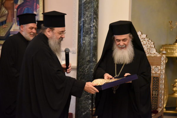 Δόθηκε δε η ευκαιρία να διαπιστωεί για μία ακόμη φορά ο αγώνας του Μακαριωτάτου Πατριάρχου Ιεροσολύμων και της Αγιοταφιτικής Αδελφότητος, στον τόσο ευαίσθητο αυτό χώρο για την διατήρηση και φύλαξη των Ιερών προσκυνημάτων αλλά και το χρέος το οποίο έχομε όλοι μας για την ενίσχυση και τον επιστηριγμό όλων αυτών, των όντως ηρώων αδελφών και πατέρων, οι οποίοι φυλάσσουν τους Αγίους Τόπους και κρατούν άσβεστη την λαμπάδα της Αναστάσεως, τηρώντας και τα δικαιώματα των Ελλήνων Ορθοδόξων, όπως τα παρέλαβαν από τους προγενεστέρους Μάρτυρες και Ομολογητές της Ορθοδοξίας και του Γένους.