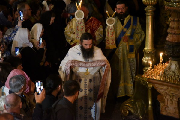 Στον Πανάγιο Τάφο τελέσθηκε η Ιερά Αγρυπνία, της οποίας με ευλογία του Μακαριωτάτου Πατριάρχου Ιεροσολύμων κ.κ. Θεοφίλου, προέστη ο Σεβασμιώτατος και στην οποία συμμετείχαν πάνω από τρεις χιλιάδες προσκυνητές από Ελλάδα, ομογενείς από Αμερική και Αυστραλία και άλλοι από άλλα μέρη του κόσμου.