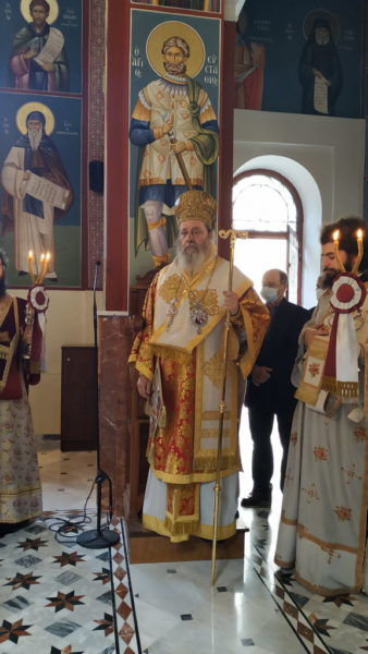Οι ιερές Ακολουθίες ετελέσθησαν στον Ιερό Ναό του Αγίου (παρεκκλήσιον του Επισκοπείου), ο οποίος εκτίσθη κατά το έτος 1899, υπό του αοιδίμου Ιεράρχου, Αρχιεπισκόπου, τότε, Πατρών και Ηλείας και μετέπειτα Μητροπολίτου Πατρών, Ιεροθέου του Μητροπούλου.