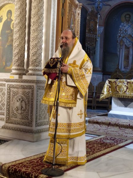 Ο Σεβασμιώτατος ανέπεμψε δέηση και παρεκάλεσε την Κυρία Θεοτόκο να μεσιτεύση προς τον Υιόν και Θεόν Της, τον Κύριον ημών Ιησούν Χριστόν, να απαλλάξη την Πατρίδα μας και τον κόσμο όλο, από την φοβεράν του λοιμού απειλή. Ειδικά ηυχήθη και παρεκάλεσε υπέρ υγιείας του Μακαριωτάτου Αρχιεπισκόπου Αθηνών και Πάσης Ελλάδος κ.κ. Ιερωνύμου. Επίσης προσευχήθηκε και δέηση ανέπεμψε υπέρ υγιείας του Μακαριωτάτου Αρχιεπισκόπου Τιράνων και Πάσης Αλβανίας κ. Αναστασίου, ο οποίος ανεγέννησε εκ της τέφρας ,ως είπε, την Εκκλησία της Αλβανίας, αλλά και υπέρ υγιείας όλων των αδελφών μας Κληρικών και Λαικών, οι οποίοι νοσηλεύονται στα Νοσοκομεία η νοσούν εξ’ αιτίας της πανδημίας του κορωνοιού.